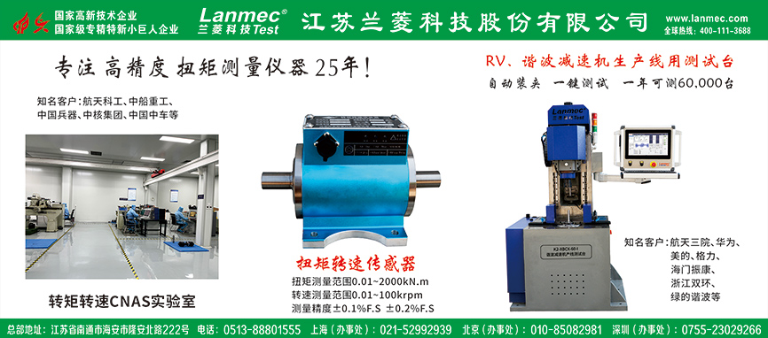 Jiangsu Lanmec Technology Co., Ltd.江蘇蘭菱科技股份有限公司成立于2002年,國(guó)家級(jí)高新技術(shù)企業(yè)、江蘇省扭矩傳感器研發(fā)中心、江蘇省企業(yè)研究生工作站。 公司主要產(chǎn)品: 轉(zhuǎn)矩轉(zhuǎn)速傳感器(扭矩傳感器):范圍0.01-2000KN.m,可以定制防爆、非標(biāo)等;各類動(dòng)力測(cè)試設(shè)備:電機(jī)測(cè)試臺(tái)、減速機(jī)測(cè)試臺(tái)、電動(dòng)機(jī)測(cè)試臺(tái)、執(zhí)行器測(cè)試臺(tái)、蝸輪箱測(cè)試臺(tái)、閥門扭矩測(cè)試臺(tái)、鉆機(jī)測(cè)試臺(tái)、液壓馬達(dá)測(cè)試臺(tái)等;各類模擬負(fù)載磁粉制動(dòng)器、磁滯制動(dòng)器、電渦流制動(dòng)器、電力測(cè)功機(jī)等;測(cè)試儀表及軟件的研發(fā)與生產(chǎn)。 蘭菱科技通過(guò)了ISO9001、ISO14000、ISO45001體系認(rèn)證,歐盟CE認(rèn)證,擁有自營(yíng)進(jìn)出口權(quán),強(qiáng)大的研發(fā)能力、全產(chǎn)業(yè)鏈的制造能力、及時(shí)售后的保障能力。